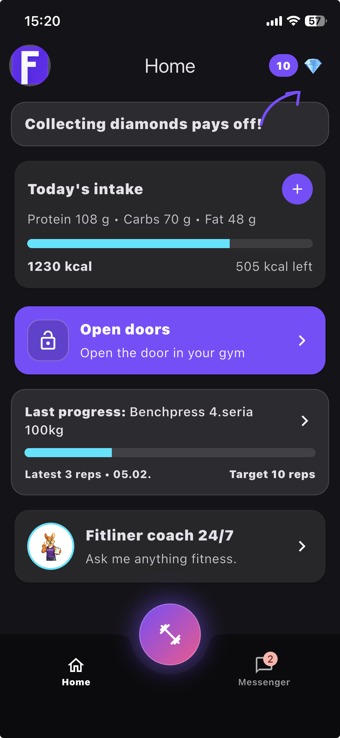 Nutrition, training and guidance tailored to you. Open your gym, earn diamonds and exchange them for rewards.